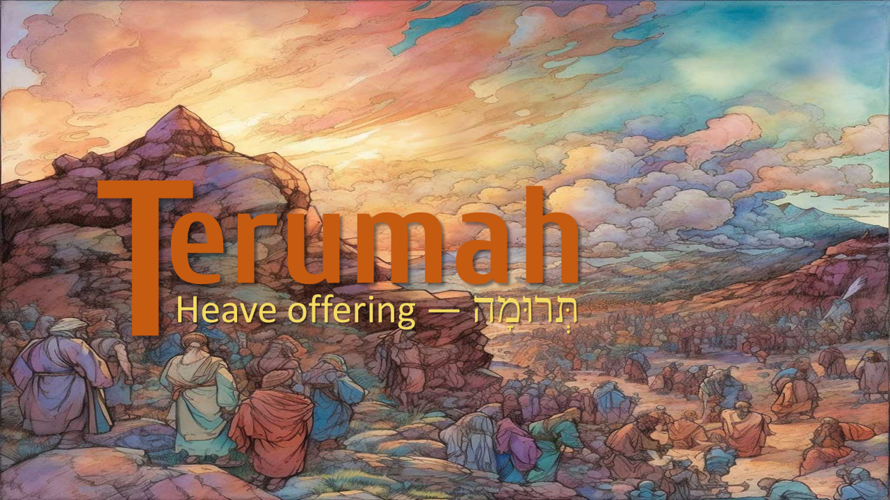 The nineteenth reading from the Torah is named Terumah. In Exodus 25:2, the LORD commanded Moses to "tell the sons of Israel to [take] a contribution for Me." Terumah is a word with no real English equivalent. In the Torah, terumah refers to a certain type of offering dedicated to the Temple, like a tithe or firstfruits offering. Terumah means "contribution," "portion," "gift," or "freewill offering."