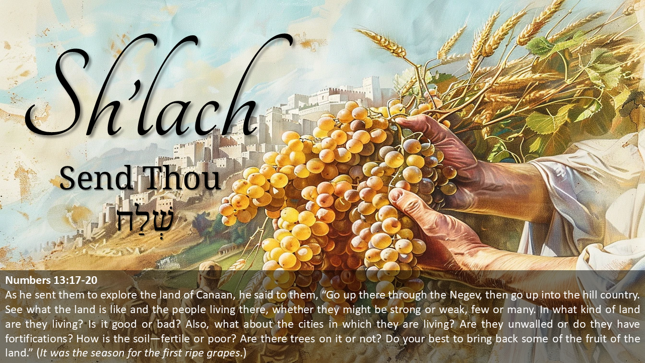 The thirty-seventh reading from the Torah is called Shelach, an imperative verb that means "send out." The Israelites had been through a lot after their miraculous deliverance from Egypt by the Hand of the LORD. First they were led to Mount Sinai, where Moses was given the Torah and the people were ratified as God's covenant children. Next, the Levitical priesthood was established and the tribes of Israel were meticulously arranged into military camp formation around the Mishkan - the dwelling place of the LORD. All these events happened during the first 13 months after leaving Egypt!