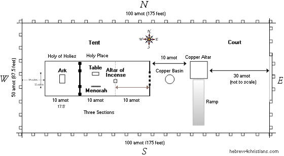 1. The Outer Court: Called the chatzer which contains the altar for blood sacrifices and the bronze laver used by the priests, and a tent-like structure called the ohel that was divided into two separate chambers: