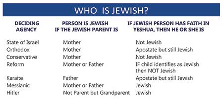 Over the millennia for Jews living outside of Israel, answering the questions of “who is a Jew?” has determined who gets evicted from their national homeland; who gets socially, financially, and politically persecuted; and who gets killed in pogroms and death camps. So, what and who is a Jew is and what does that mean for the Believer in Yeshua (Jesus) today?